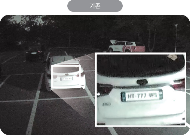 Wisenet7은 저조도 환경에서도 객체의 엣지나 색상 표현을 최대화 해 객체에 대한 정보 식별이 가능합니다.